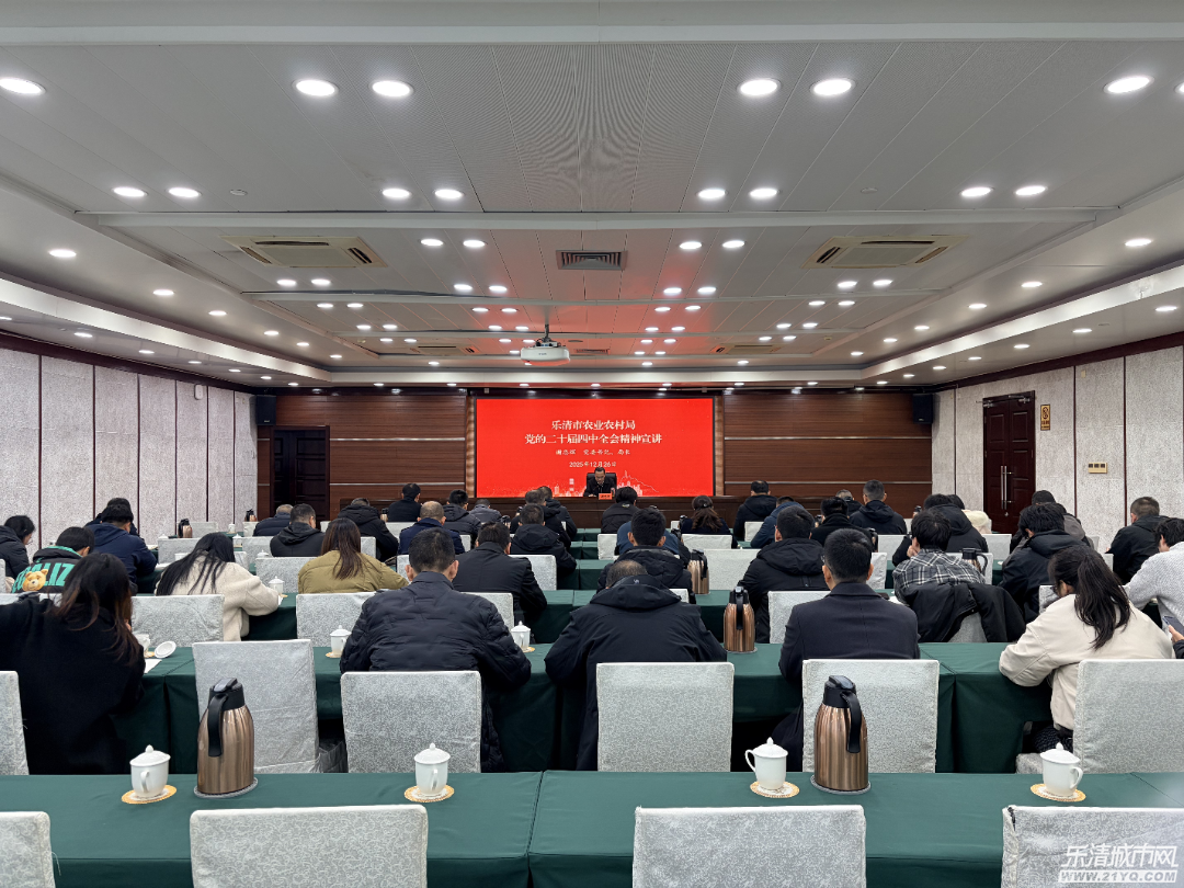 为深入学习宣传贯彻党的二十届四中全会精神,切实把全局党员干部的思 想和行动统一到全会决策部署上来,12月26日,乐清市农业农村局召开党的二十届四中全会精神主题宣讲会。局党委书记、 ...