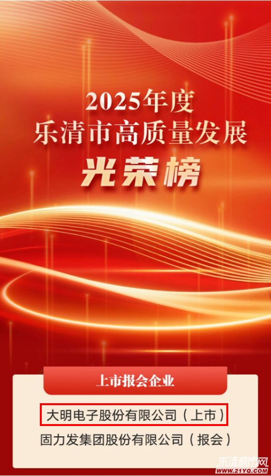 2025年度乐清市高质量发展光荣榜 2026年2月26日,乐清市做强“三大支撑”促共富、“六干争先”开新局动员大会召开,乐清市模具行业协会大明电子股份有限公司、乐清昌德成电子有限公司、浙 ...