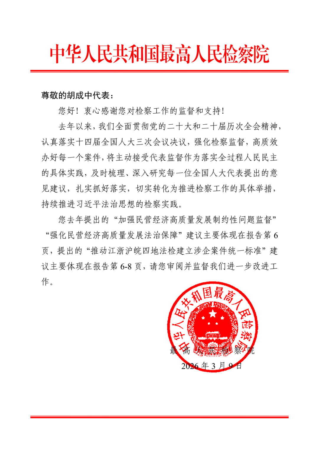 3月10日,在浙江省代表团审议最高人民检察院工作报告时,胡成中代表围绕民营经济法治发展需求,提出了“深化涉企司法保护”“强化前沿领域知识产权保护”“优化涉企服务”等意见。 ...